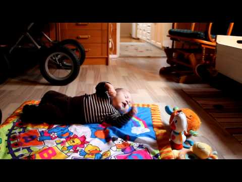 Oltiinkin vähän lattialla leikkimässä ja siinä Leo oppi uuden taidon sopivasti tänään kun tuli tasan 3kk täyteen :)